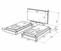 - Габариты: В/Ш/Д 700 х 1000 х 1250 мм.