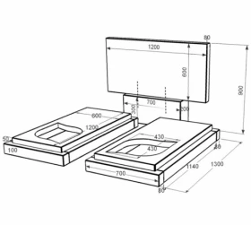 - Габариты: В/Ш/Д 900 х 1200 х 1500 мм.