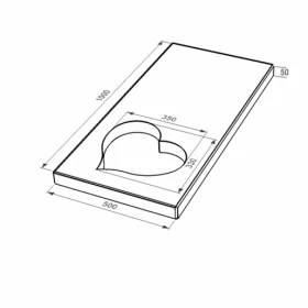 - Надгробная плита правая 1000x500x50 из гранита серия Сердце с неполированными фасками с неполированными торцами Коростышевского карьера pl-kor-npf-npt-100-50-05-SERCE-r.