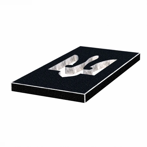 Надгробная плита (вместо цветника) 50 см шириной из гранита плита Трезуб с неполированными фасками Букинского карьера pl-buk-npf-pt-100-50-05-TRIZUB