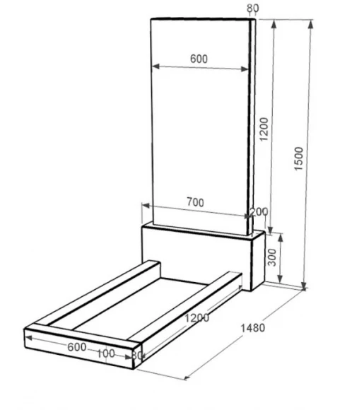 - Габарити: В/Ш/Д 1500 х 700 х 1480 мм.