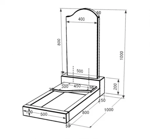 - Влаштування: з постаментом , зі стелою , без майданчика , з квітником , повне полірування сторін , неполіровані фаски , з плитою на квітнику , 1 портрет ПІБ та дата