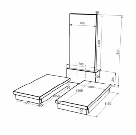 - Габарити: В/Ш/Д 1500 х 700 х 1400 мм.