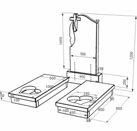 - Габарити: В/Ш/Д 1200 х 600 х 1150 мм.