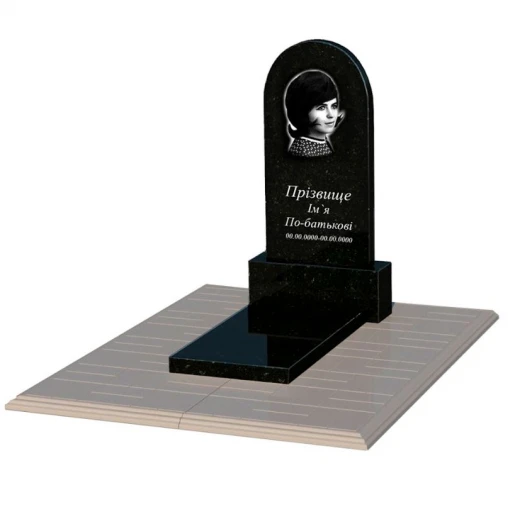 Могильний пам'ятник із граніту чорний Коростишев одинарний з полукруглою стелою к7-kor-pf-80-40-05-006-pbd1
