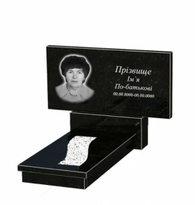 - Гранітна плита на могилу мамі одинарний із чорного граніту Коростишів з вирізаною смугою к23-kor-npf-60-120-08-001.