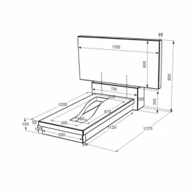 - Габарити: В/Ш/Д 900 х 1200 х 1400 мм.