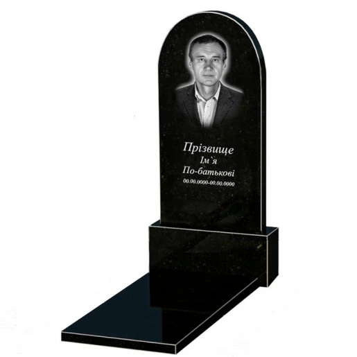 - Гранітний пам'ятник на могилу для мужчини одинарний із чорного граніту Коростишів з полукруглою стелою к7-kor-npf-120-60-08-006.