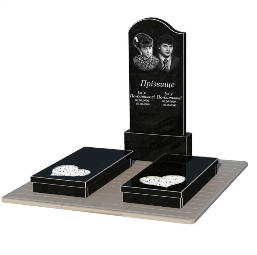 - Гранітний пам'ятник для могили подвійний із чорного граніту Коростишів з серцем різьблена робота к20-kor-npf-120-60-08-011-l-pbd3.
