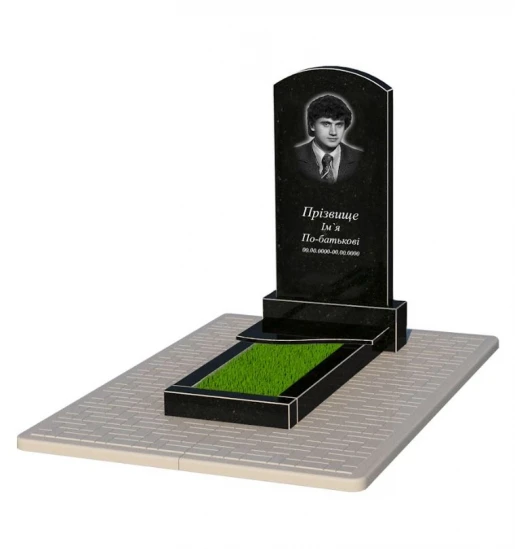 - Влаштування: з постаментом , зі стелою , з протиусадковою плитою , з квітником , повне полірування сторін , неполіровані фаски , з плитою на квітнику , 1 портрет ПІБ та дата