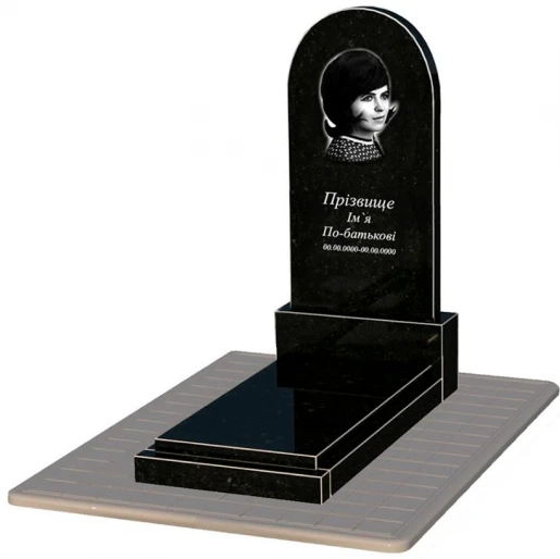 - Гранітний пам'ятник на могилу одинарний із чорного граніту Коростишів з полукруглою стелою к12-kor-npf-120-60-08-006-pbd3.