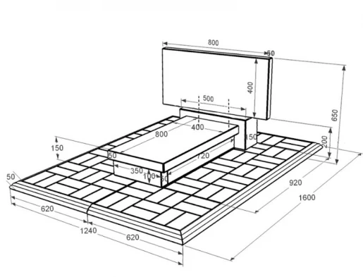 - Габарити: В/Ш/Д 600(50) х 800(1240) х 950(1600) мм.