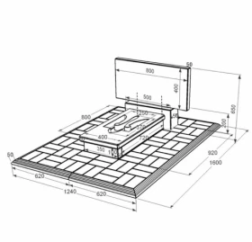 - Габарити: В/Ш/Д 600(50) х 800(1240) х 950(1600) мм.