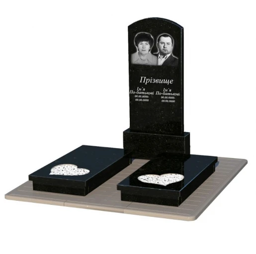 - Влаштування: з постаментом , зі стелою , з протиусадковою плитою , з гробницею , повне полірування сторін , поліровані фаски , 2 портрети, ПІБ з одним прізвищем та дати