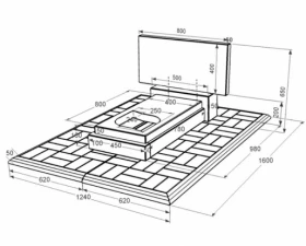 - Габарити: В/Ш/Д 600(50) х 800(1240) х 980(1600) мм.