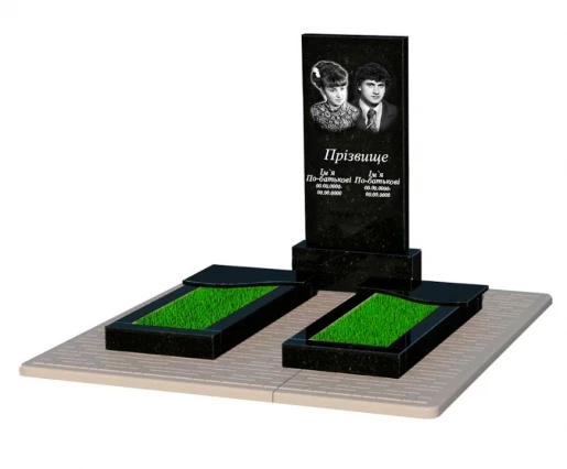 - Влаштування: з постаментом , зі стелою , з протиусадковою плитою , з квітником , повне полірування сторін , поліровані фаски , з плитою на квітнику , 2 портрети, ПІБ з одним прізвищем та дати