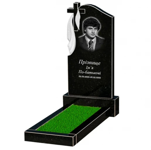 - Гранітний пам'ятник з хрестом різьблений одинарний із чорного граніту Коростишів з плащаницею різьблений к1-kor-npf-100-50-08-142.