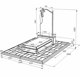 - Габарити: В/Ш/Д 1000(50) х 500(1240) х 980(1600) мм.