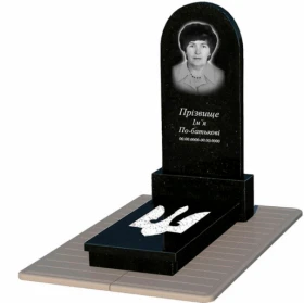 - Гранітний пам'ятник з 1 надгробком одинарний із чорного граніту Коростишів з Тризубом вирізаним к8-kor-pf-120-60-08-006-pbd3.
