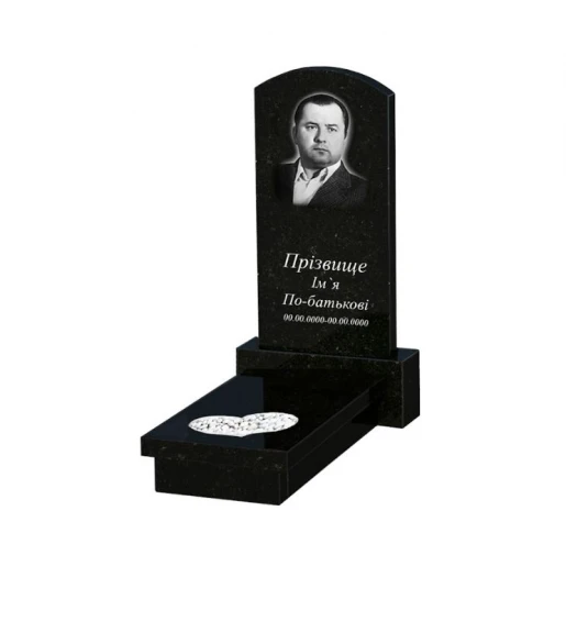 Гранітна плита на могилу з полірованими фасками одинарна із чорного граніту Коростишів з серцем різьблена робота к11-kor-pf-80-40-05-009
