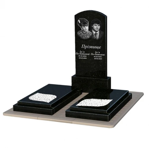 - Влаштування: з постаментом , зі стелою , з протиусадковою плитою , з гробницею , повне полірування сторін , поліровані фаски , 2 портрети, ПІБ з одним прізвищем та дати