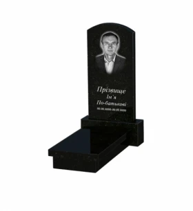 - Пам'ятник із граніту поліровані фаски одинарний із чорного граніту Коростишів з дугою різьблений к10-kor-pf-80-40-05-009.