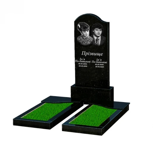 - Влаштування: з постаментом , зі стелою , без майданчика , з квітником , повне полірування сторін , поліровані фаски , з плитою на квітнику , 2 портрети, ПІБ з одним прізвищем та дати