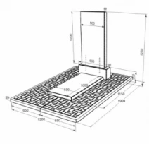 - Габарити: В/Ш/Д 1200(50) х 600(1300) х 1150(1900) мм.