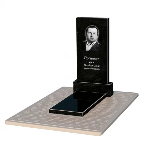 - Влаштування: з постаментом , зі стелою , з протиусадковою плитою , з надгробною плитою , повне полірування сторін , неполіровані фаски , 1 портрет ПІБ та дата