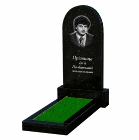 - Гранітна плита на могилу з полукруглою стелою одинарний із чорного граніту Коростишів к1-kor-pf-100-50-08-006.