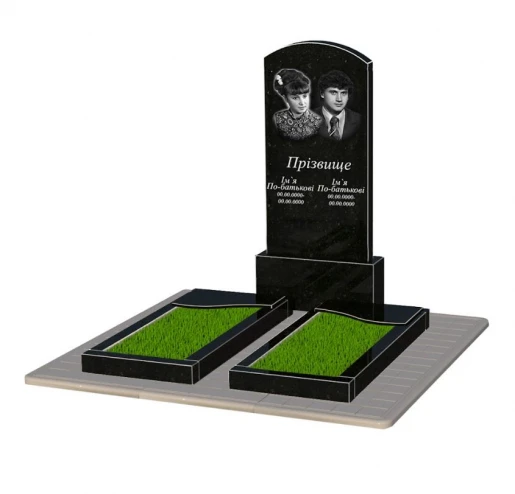 - Влаштування: з постаментом , зі стелою , з протиусадковою плитою , з квітником , повне полірування сторін , неполіровані фаски , 2 портрети, ПІБ з одним прізвищем та дати