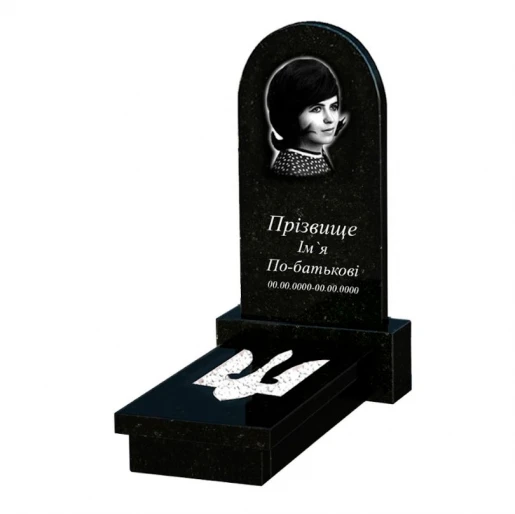 - Гранітний пам'ятник з Тризубом вирізаним одинарний із чорного граніту Коростишів к8-kor-pf-80-40-08-006.