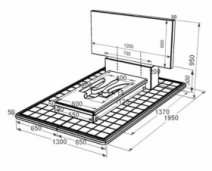 - Габарити: В/Ш/Д 900(50) х 1200(1300) х 1400(1950) мм.
