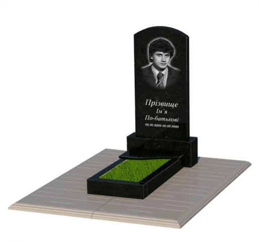 - Влаштування: з постаментом , зі стелою , з протиусадковою плитою , з квітником , повне полірування сторін , поліровані фаски , з плитою на квітнику , 1 портрет ПІБ та дата