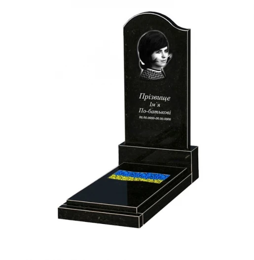 - Гранітний надгробок з вирізаним прапором одинарний із чорного граніту Коростишів з хвилею різьблений к6-kor-npf-120-60-08-011.