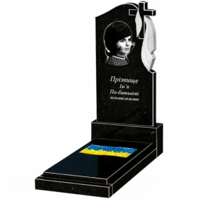 - Гранітний пам'ятник з різним прапором одинарний із чорного граніту Коростишів к6-kor-npf-120-60-08-142-r.