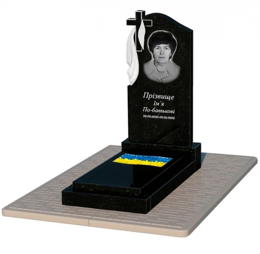 - Гранітний пам'ятник з вирізаним прапором одинарний із чорного граніту Коростишів к6-kor-pf-100-50-08-142-pbd2.