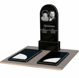 - Влаштування: з постаментом , зі стелою , з протиусадковою плитою , з надгробною плитою , повне полірування сторін , неполіровані фаски , 2 портрети, ПІБ з одним прізвищем та дати