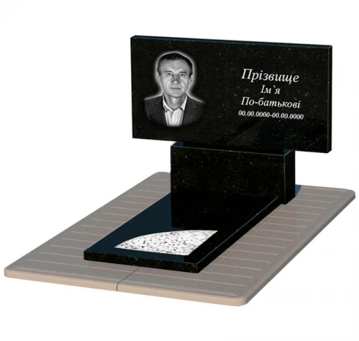 - Влаштування: з постаментом , зі стелою , з протиусадковою плитою , з надгробною плитою , повне полірування сторін , поліровані фаски , 1 портрет ПІБ та дата