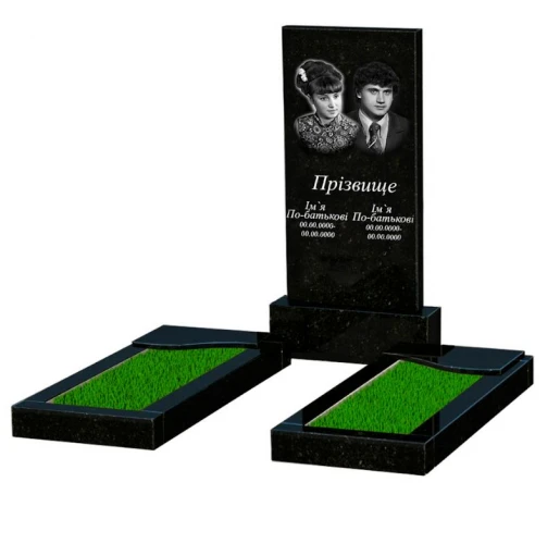 - Влаштування: з постаментом , зі стелою , без майданчика , з квітником , повне полірування сторін , поліровані фаски , з плитою на квітнику , 2 портрети, ПІБ з одним прізвищем та дати