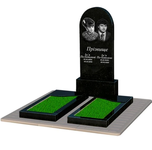 - Влаштування: з постаментом , зі стелою , з протиусадковою плитою , з квітником , повне полірування сторін , поліровані фаски , з плитою на квітнику , 2 портрети, ПІБ з одним прізвищем та дати
