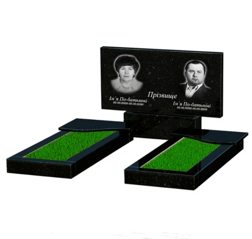 - Влаштування: з постаментом , зі стелою , без майданчика , з квітником , повне полірування сторін , поліровані фаски , з плитою на квітнику , 2 портрети, ПІБ з одним прізвищем та дати