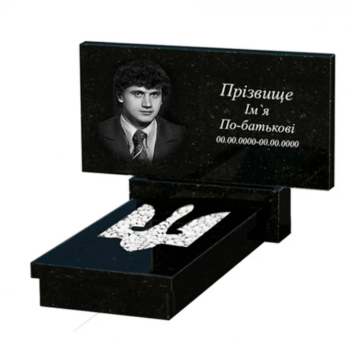 - Пам'ятник із граніту середнього розміру одинарний із чорного граніту Коростишів з Тризубом вирізаним к8-kor-pf-50-100-08-001.