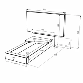 - Габарити: В/Ш/Д 600 х 800 х 1000 мм.
