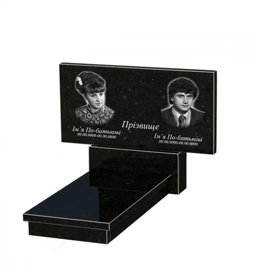 - Влаштування: з постаментом , зі стелою , без майданчика , з гробницею , повне полірування сторін , неполіровані фаски , 2 портрети, ПІБ з одним прізвищем та дати