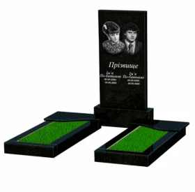 - Влаштування: з постаментом , зі стелою , без майданчика , з квітником , повне полірування сторін , поліровані фаски , з плитою на квітнику , 2 портрети, ПІБ з одним прізвищем та дати