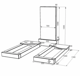 - Габарити: В/Ш/Д 1200 х 600 х 1310 мм.