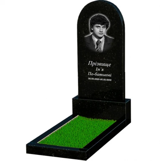 - Гранітний пам'ятник синові одинарний із чорного граніту Коростишів з полукруглою стелою к2-kor-pf-120-60-08-006.