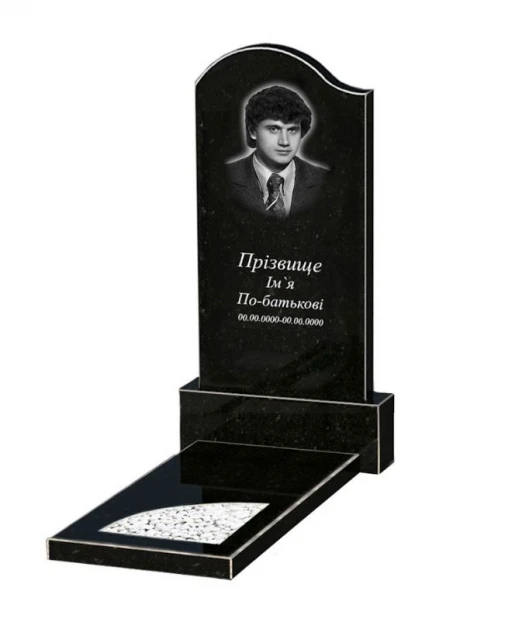 - Влаштування: з постаментом , зі стелою , без майданчика , з надгробною плитою , повне полірування сторін , неполіровані фаски , 1 портрет ПІБ та дата