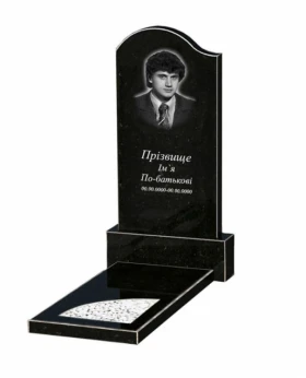Пам'ятник із граніту для сина одинарний із чорного граніту Коростишів з вирізаним куточком к9-kor-npf-100-50-08-011